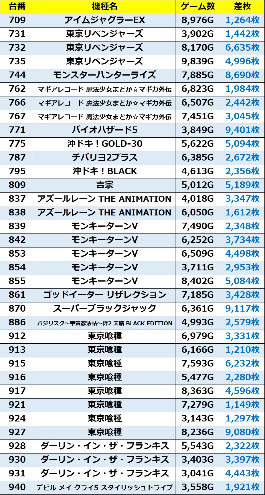 ※記事中のデータは独自の調査によりまとめたものであり、ホールデータを保証するものではございません。 実際の数値とは多少の誤差があると思いますが、ご了承ください。
