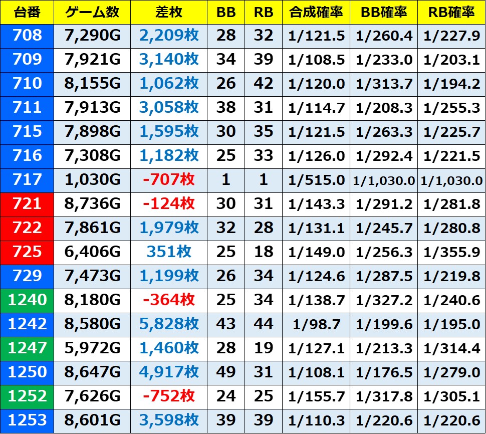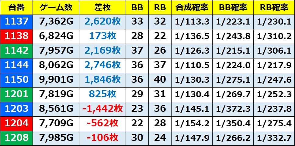 ・集計機種54台(35.8%)総差枚数:+76,264枚
