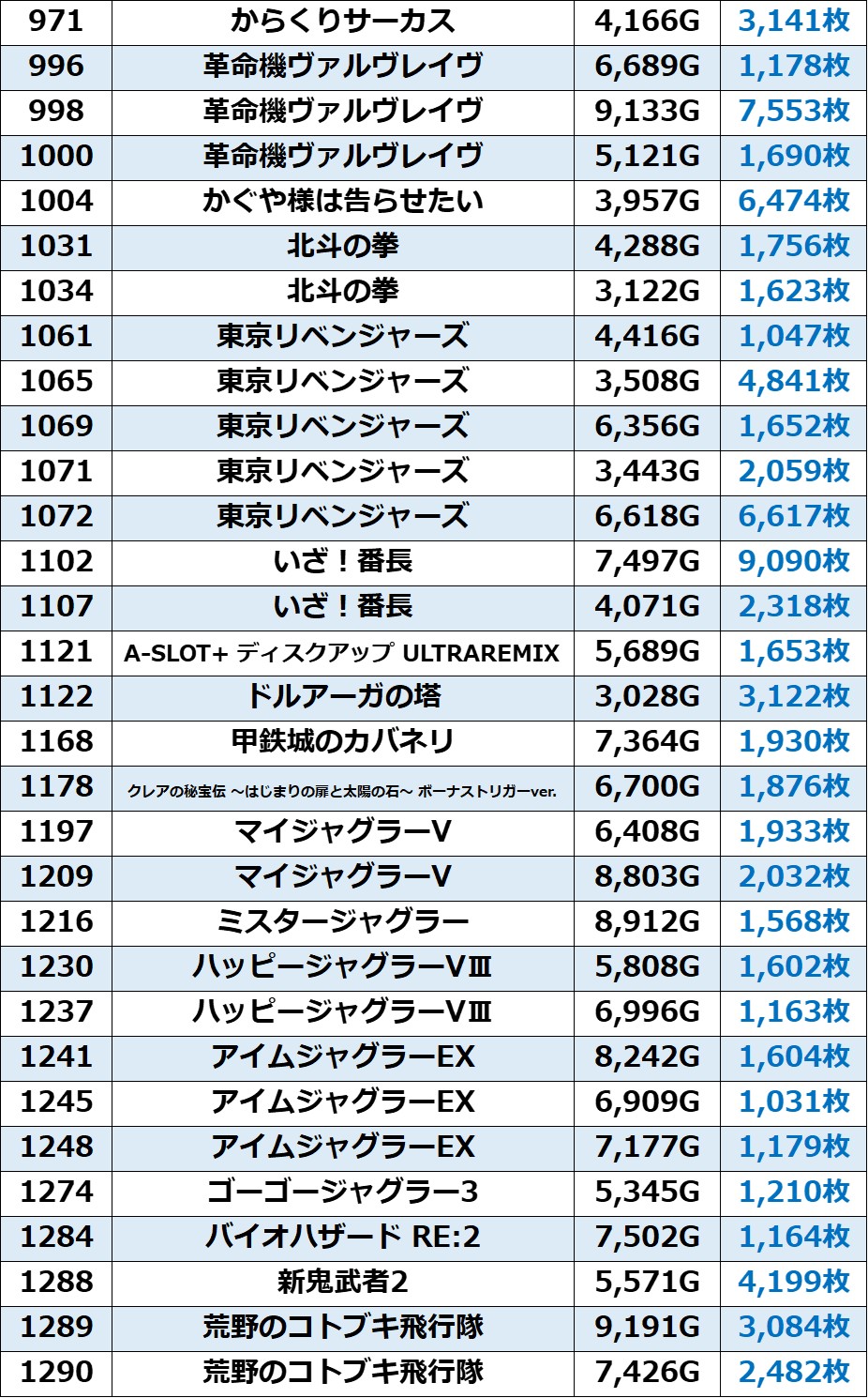 ※記事中のデータは独自の調査によりまとめたものであり、ホールデータを保証するものではございません。 実際の数値とは多少の誤差があると思いますが、ご了承ください。