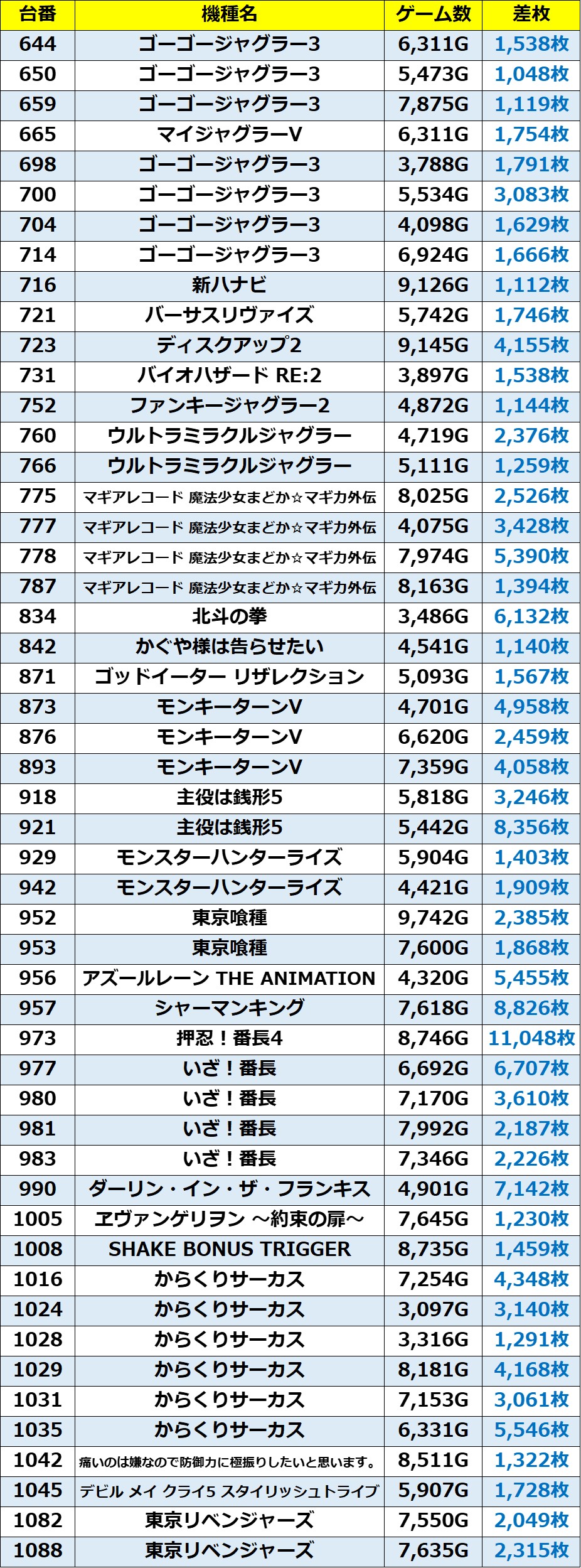 ※記事中のデータは独自の調査によりまとめたものであり、ホールデータを保証するものではございません。 実際の数値とは多少の誤差があると思いますが、ご了承ください。