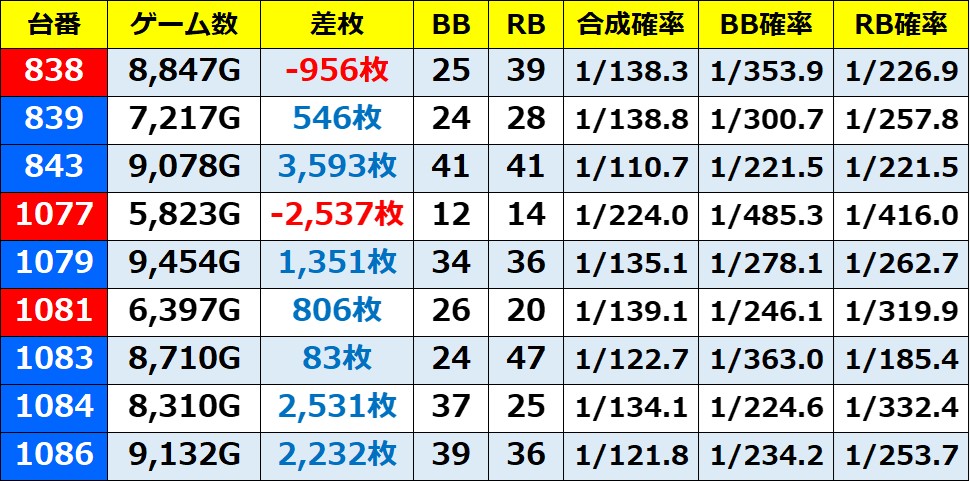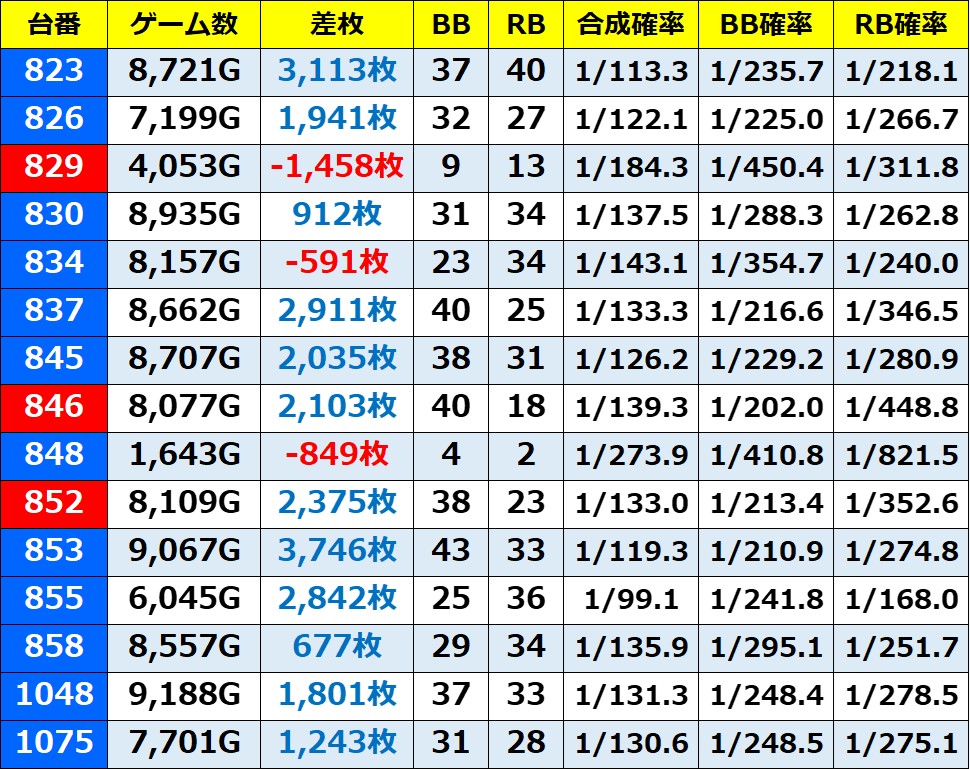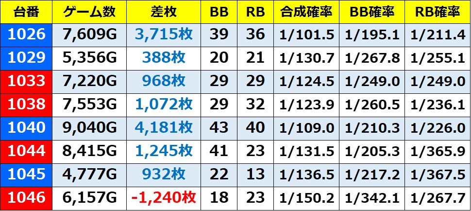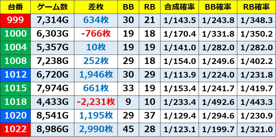 ※記事中のデータは独自の調査によりまとめたものであり、ホールデータを保証するものではございません。 実際の数値とは多少の誤差があると思いますが、ご了承ください。