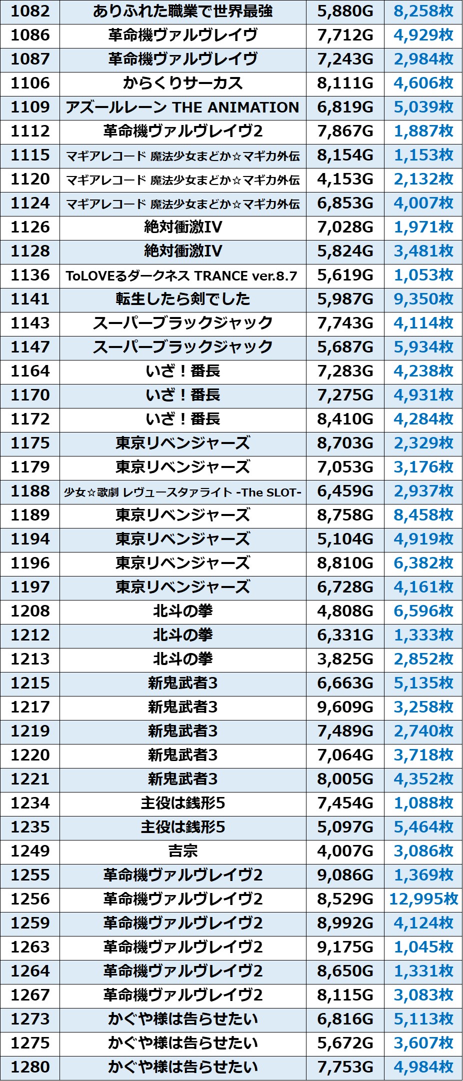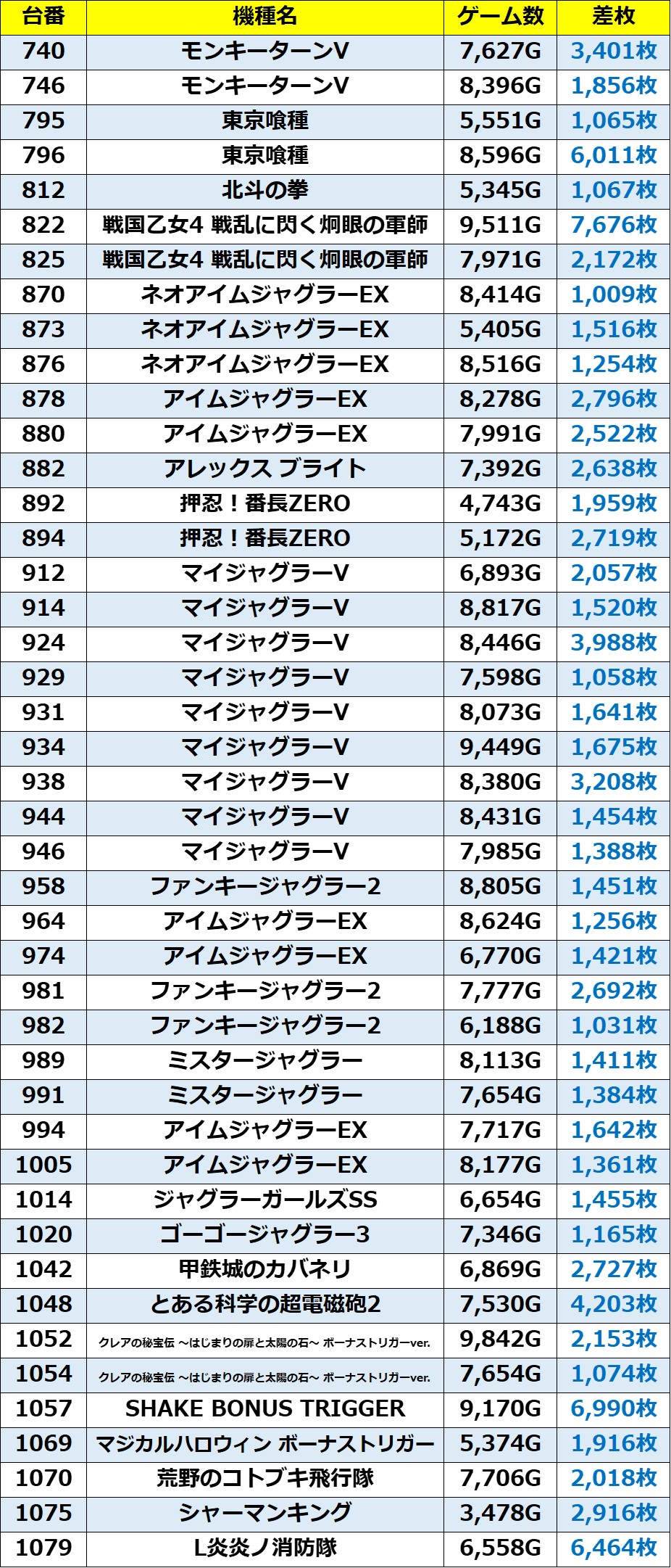 ※記事中のデータは独自の調査によりまとめたものであり、ホールデータを保証するものではございません。 実際の数値とは多少の誤差があると思いますが、ご了承ください。