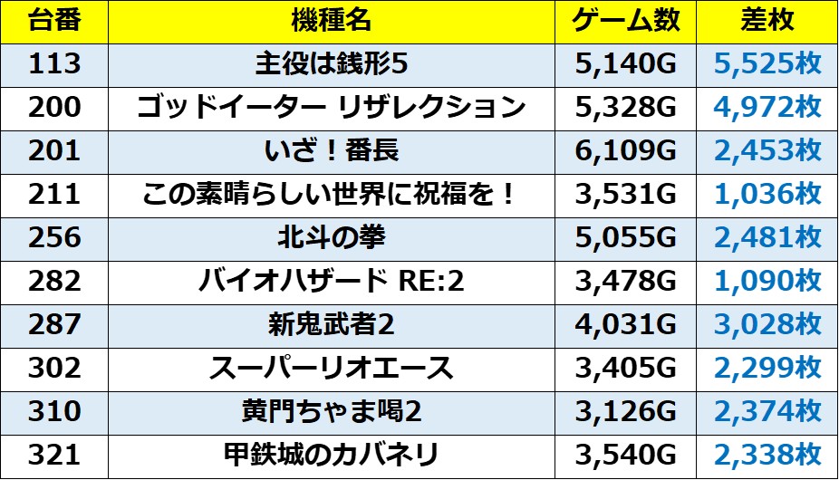※記事中のデータは独自の調査によりまとめたものであり、ホールデータを保証するものではございません。 実際の数値とは多少の誤差があると思いますが、ご了承ください。