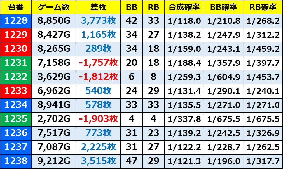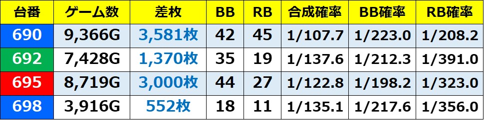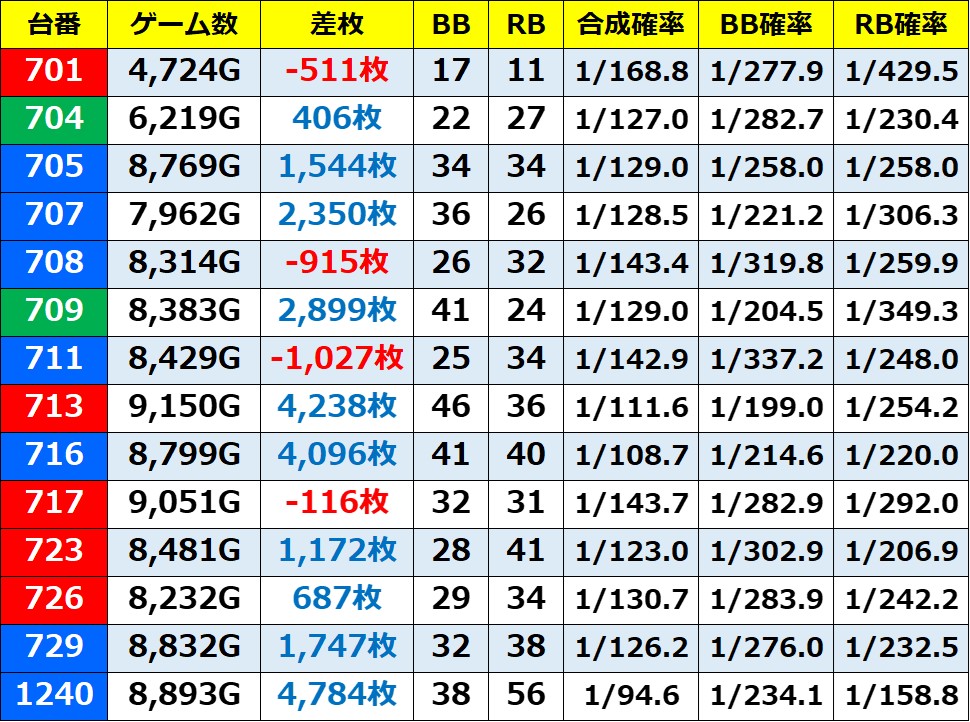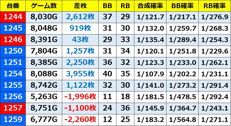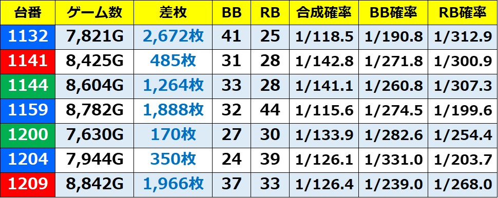 ※記事中のデータは独自の調査によりまとめたものであり、ホールデータを保証するものではございません。 実際の数値とは多少の誤差があると思いますが、ご了承ください。