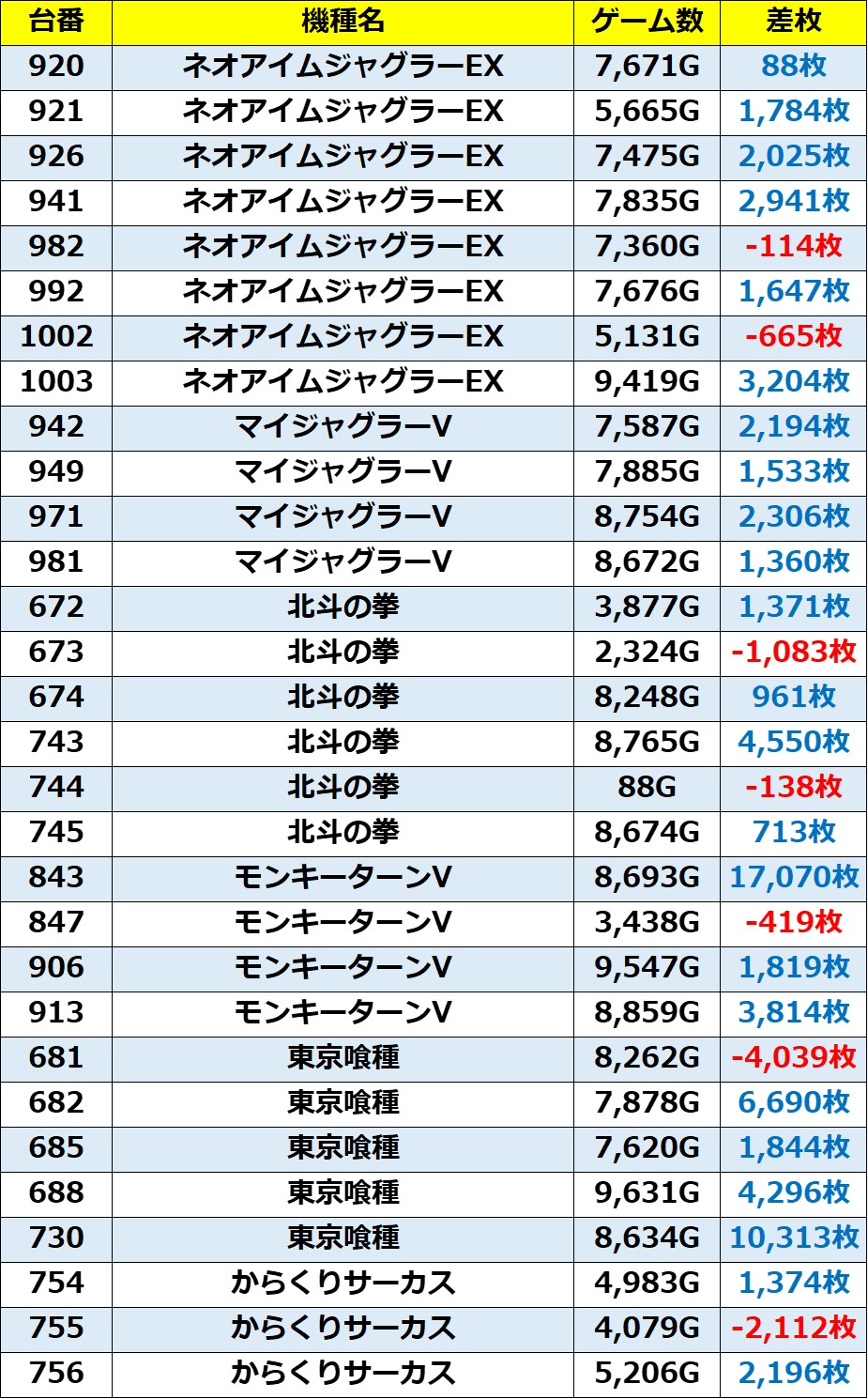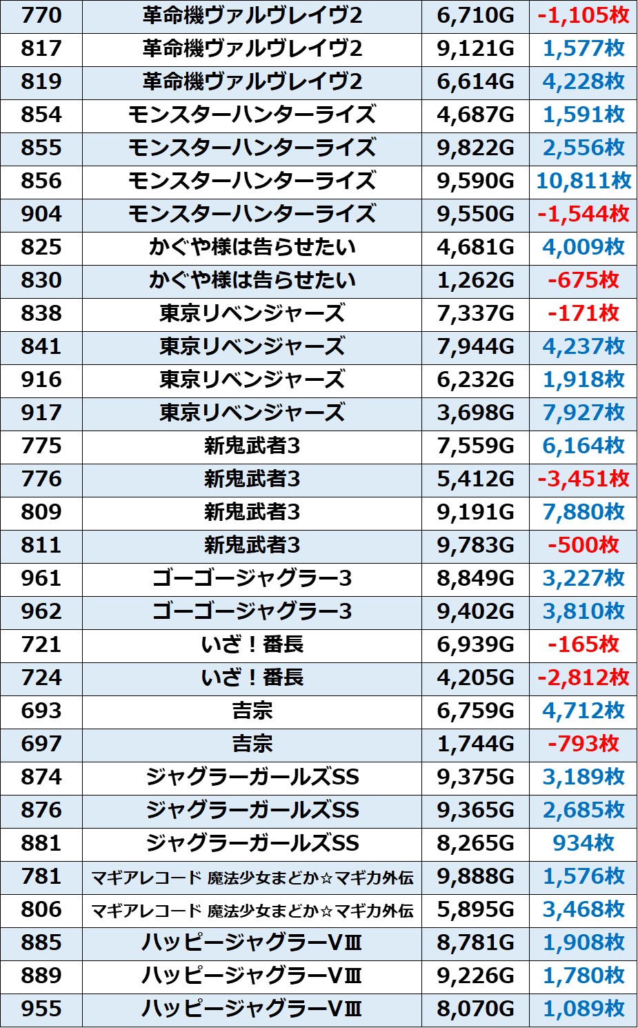 ・集計機種94台(25.1%)総差枚数:+169,575枚