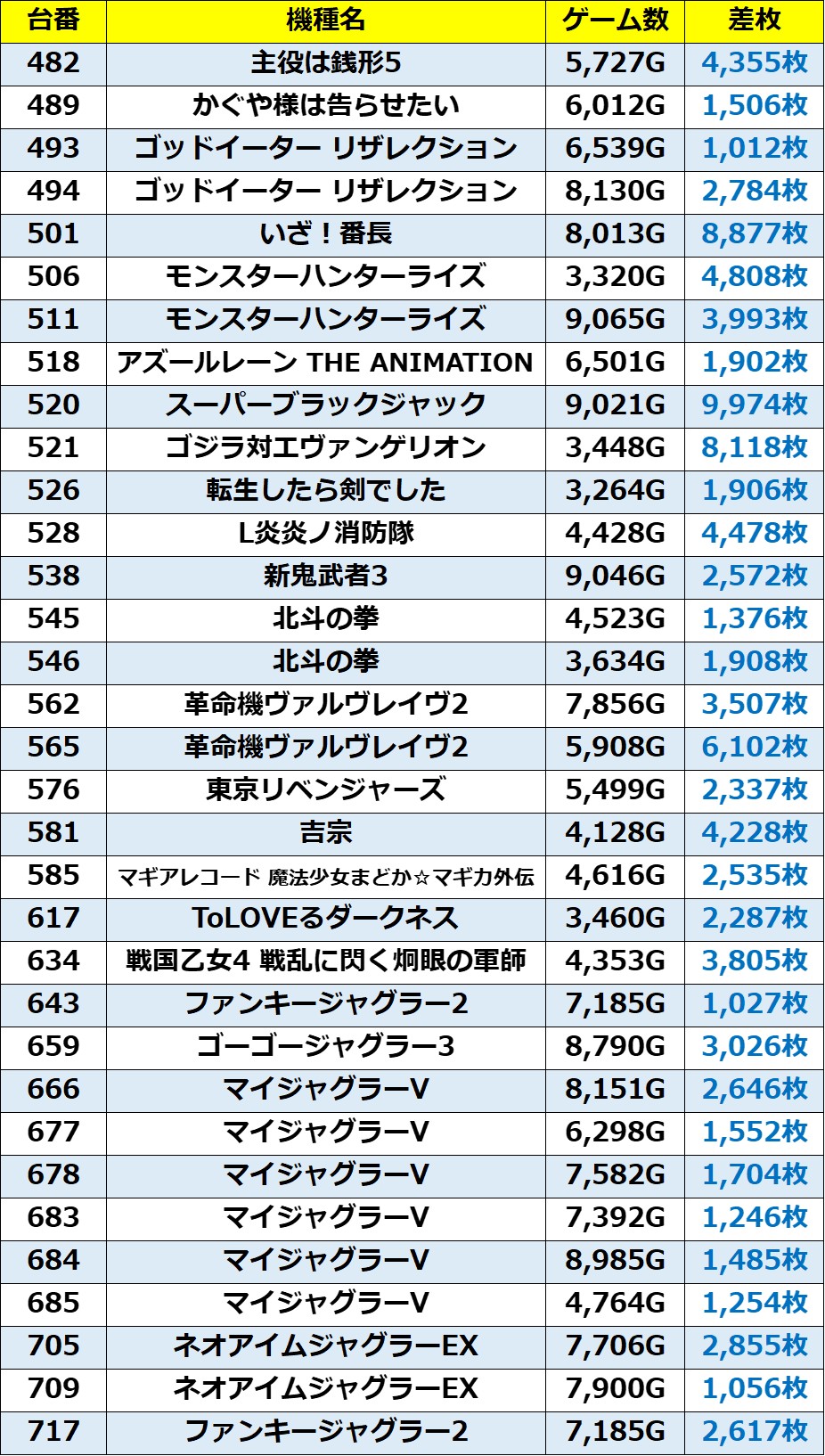 ※記事中のデータは独自の調査によりまとめたものであり、ホールデータを保証するものではございません。 実際の数値とは多少の誤差があると思いますが、ご了承ください。