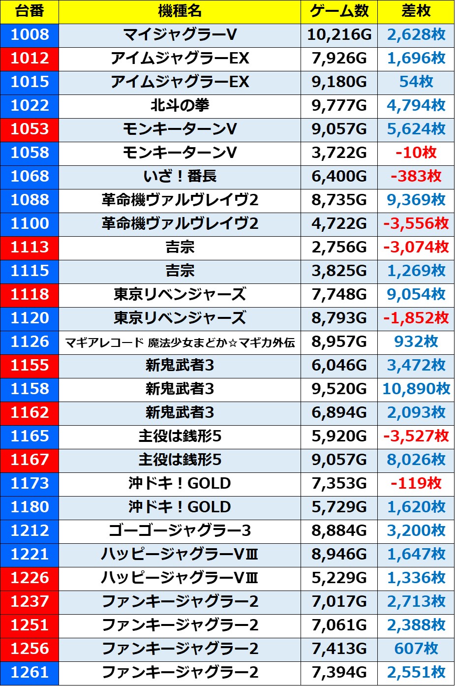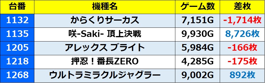・集計機種55台(29.9%)総差枚数:+130,456枚