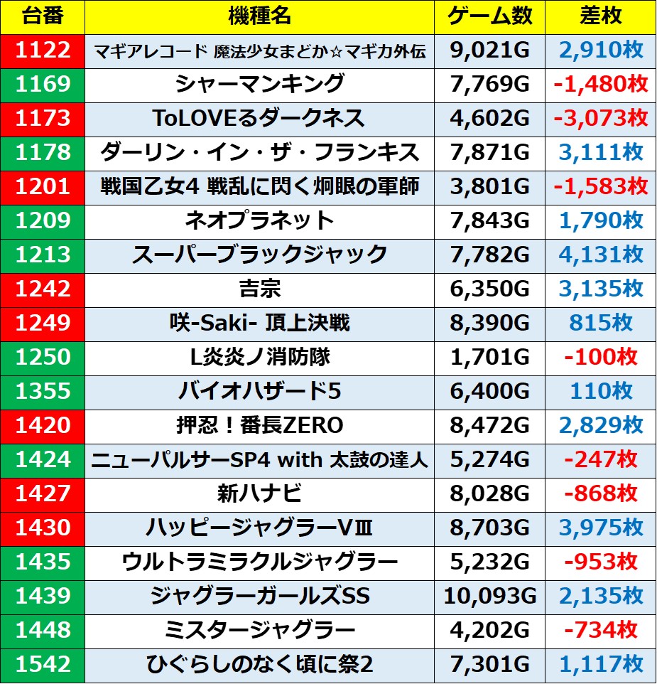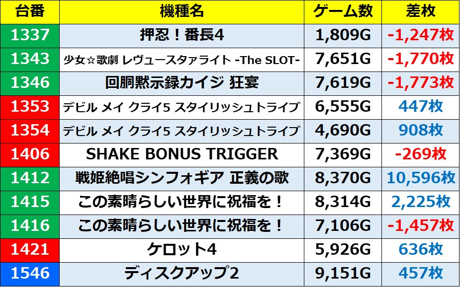 ※記事中のデータは独自の調査によりまとめたものであり、ホールデータを保証するものではございません。 実際の数値とは多少の誤差があると思いますが、ご了承ください。