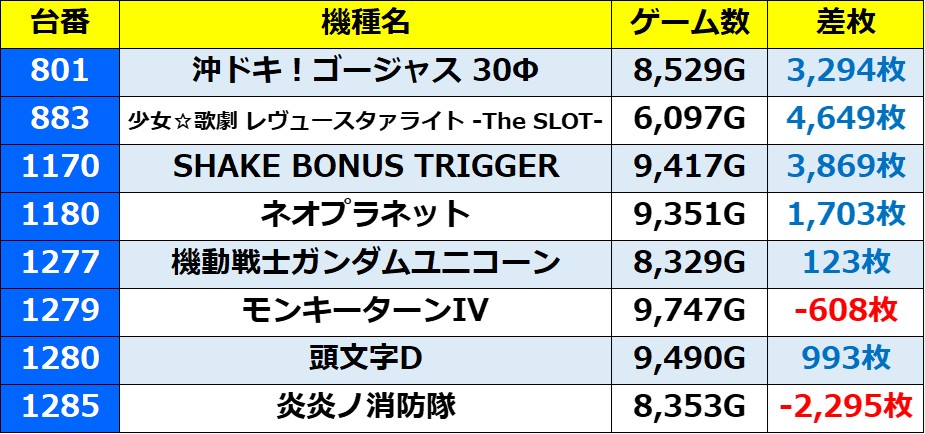 ・集計機種127台(21.3%)総差枚数:+366,753枚