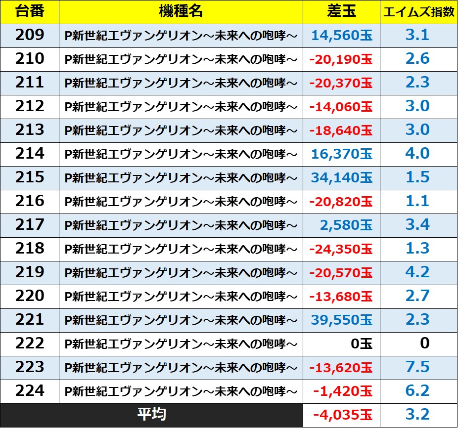 ・集計機種30台総差玉数:-20,130玉