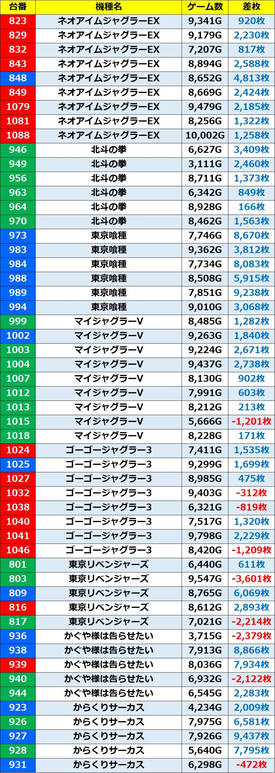 ・集計機種123台(27.8%)総差枚数:+285,490枚