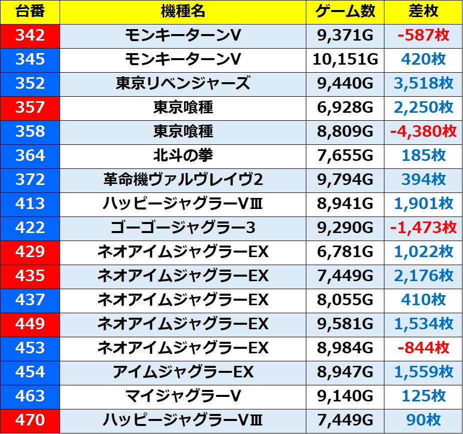 ・集計機種42台(26.3%)総差枚数:+60,131枚