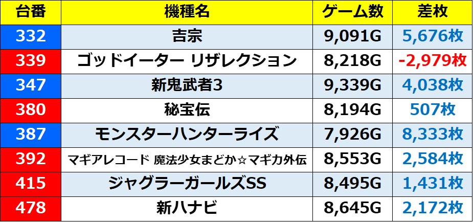 ※記事中のデータは独自の調査によりまとめたものであり、ホールデータを保証するものではございません。 実際の数値とは多少の誤差があると思いますが、ご了承ください。