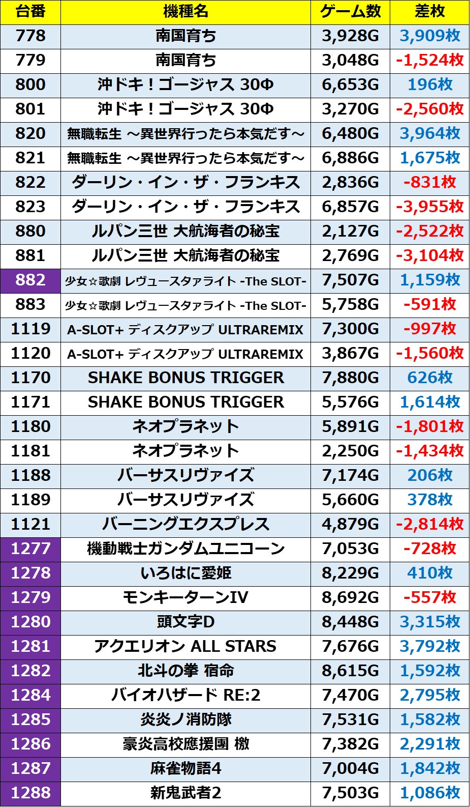 ※記事中のデータは独自の調査によりまとめたものであり、ホールデータを保証するものではございません。 実際の数値とは多少の誤差があると思いますが、ご了承ください。