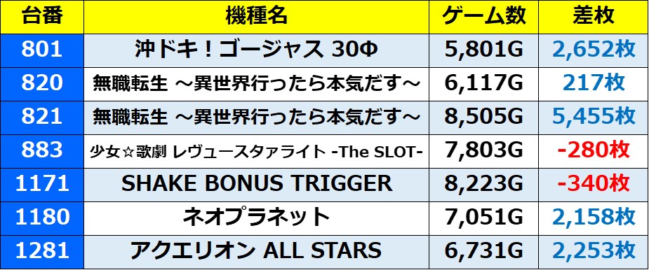 ・集計機種134台(22.3%)総差枚数:+214,987枚