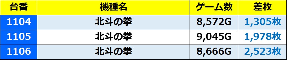 ・1台あたりの平均差枚数:+1,604枚