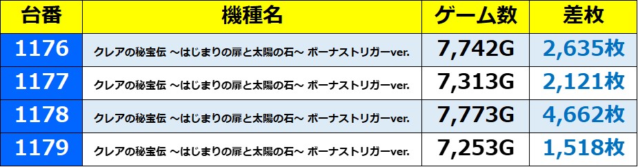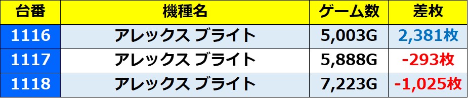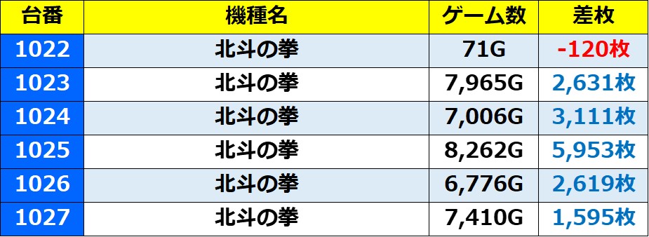 注目箇所①(※1022番台は台トラブルで稼働停止)