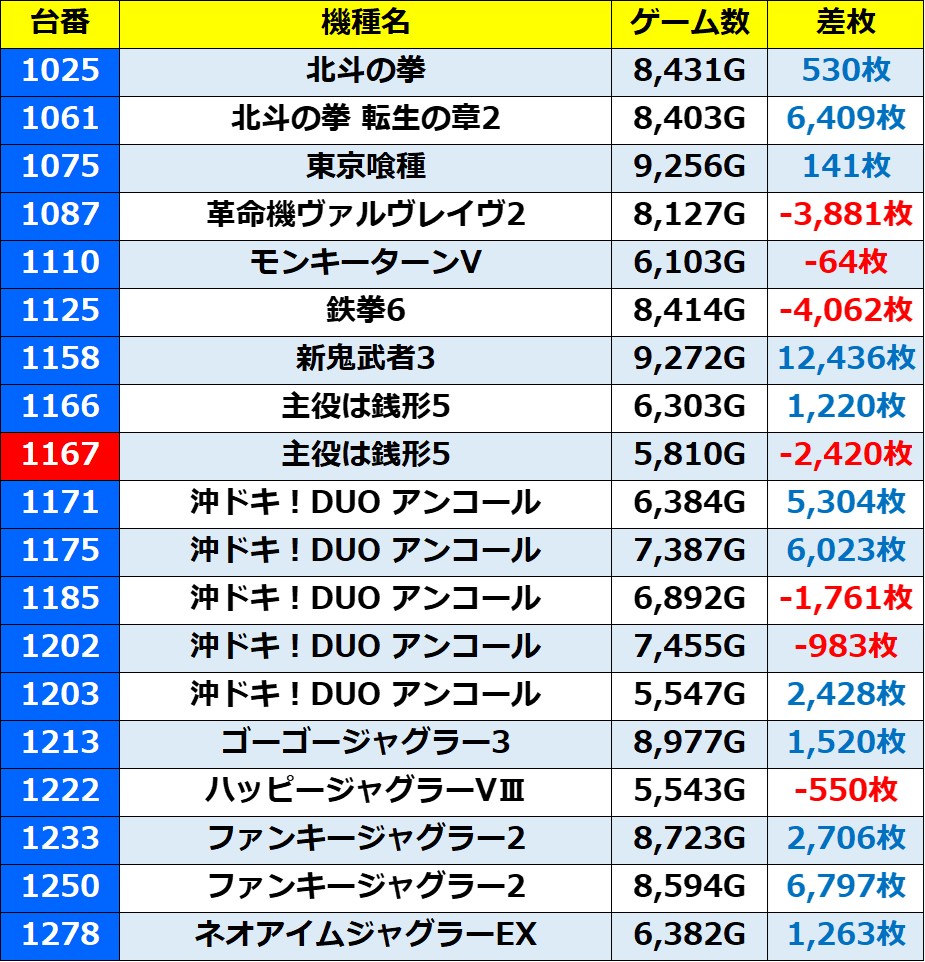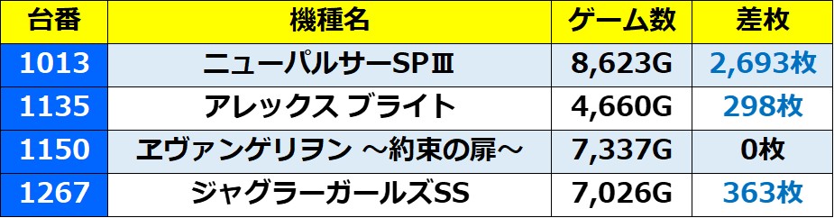 ※記事中のデータは独自の調査によりまとめたものであり、ホールデータを保証するものではございません。 実際の数値とは多少の誤差があると思いますが、ご了承ください。
