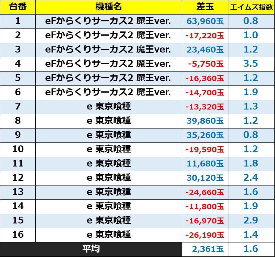 ・集計機種61台総差玉数:+337,630玉