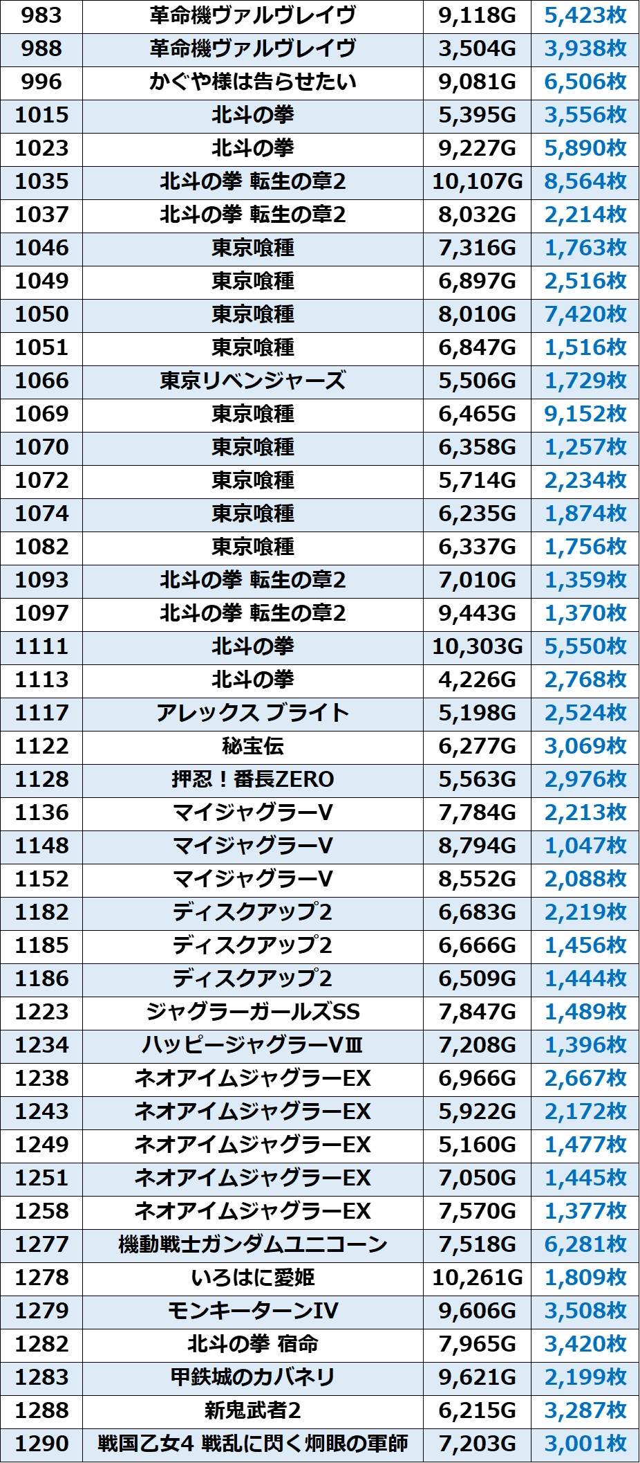 ※記事中のデータは独自の調査によりまとめたものであり、ホールデータを保証するものではございません。 実際の数値とは多少の誤差があると思いますが、ご了承ください。