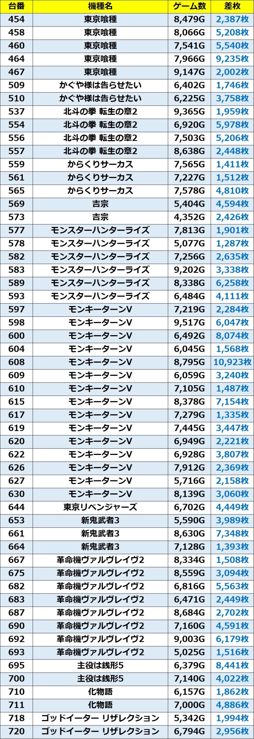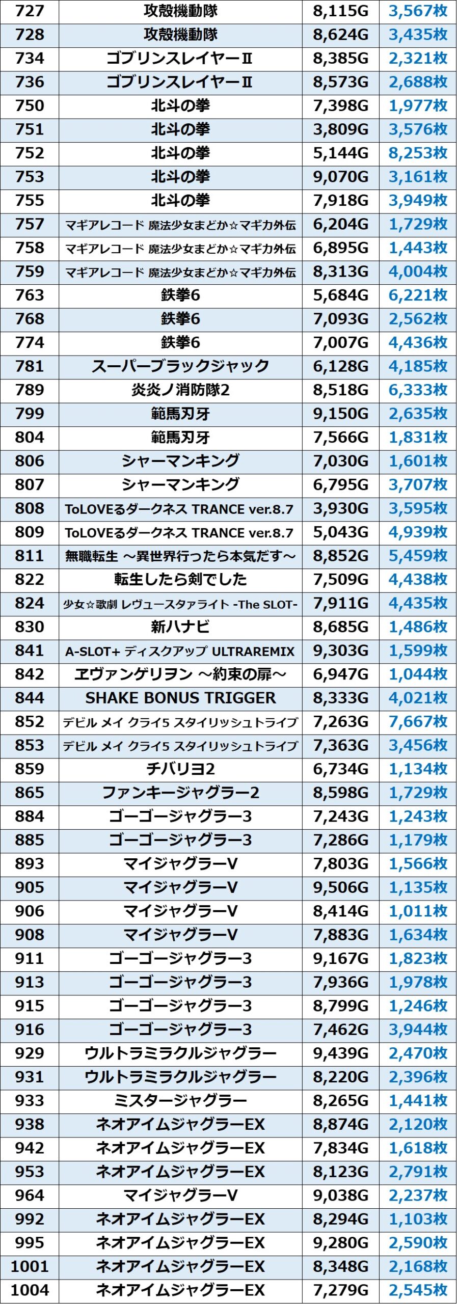 ※記事中のデータは独自の調査によりまとめたものであり、ホールデータを保証するものではございません。 実際の数値とは多少の誤差があると思いますが、ご了承ください。