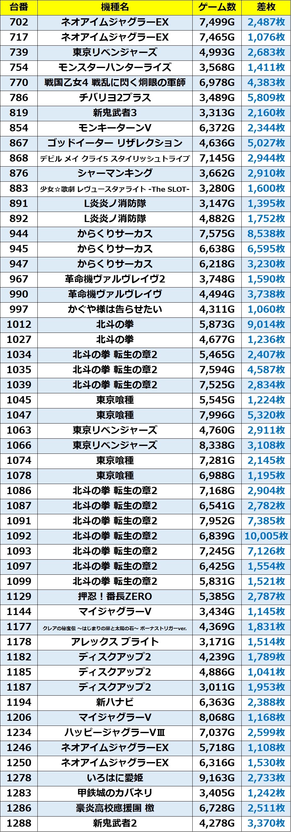 ・1台あたりの平均差枚数:+1,984枚