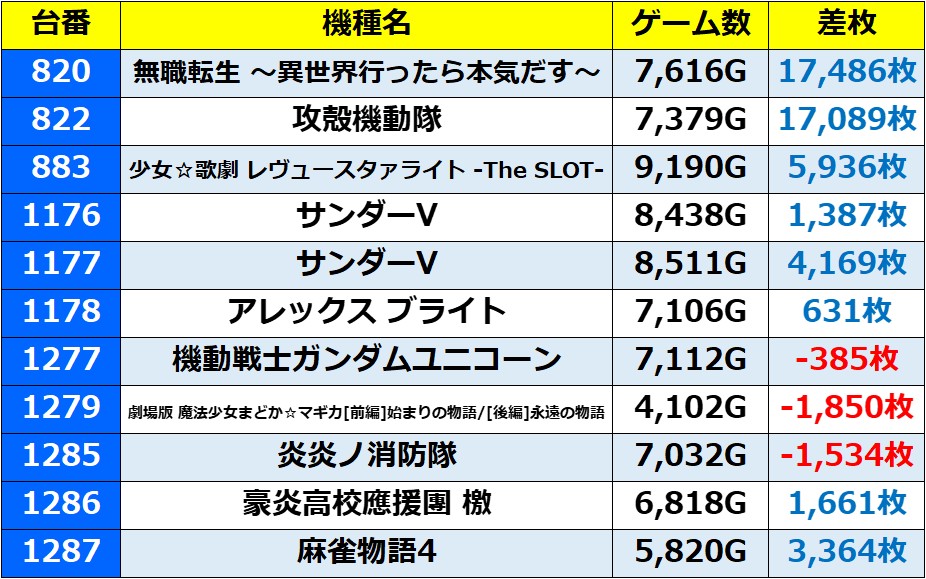 ・集計機種126台(21.0%)総差枚数:+394,345枚