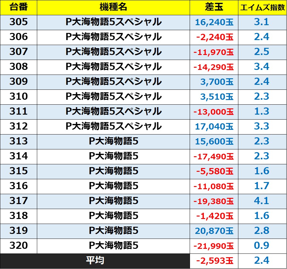 ・集計機種32台総差玉数:-65,300玉