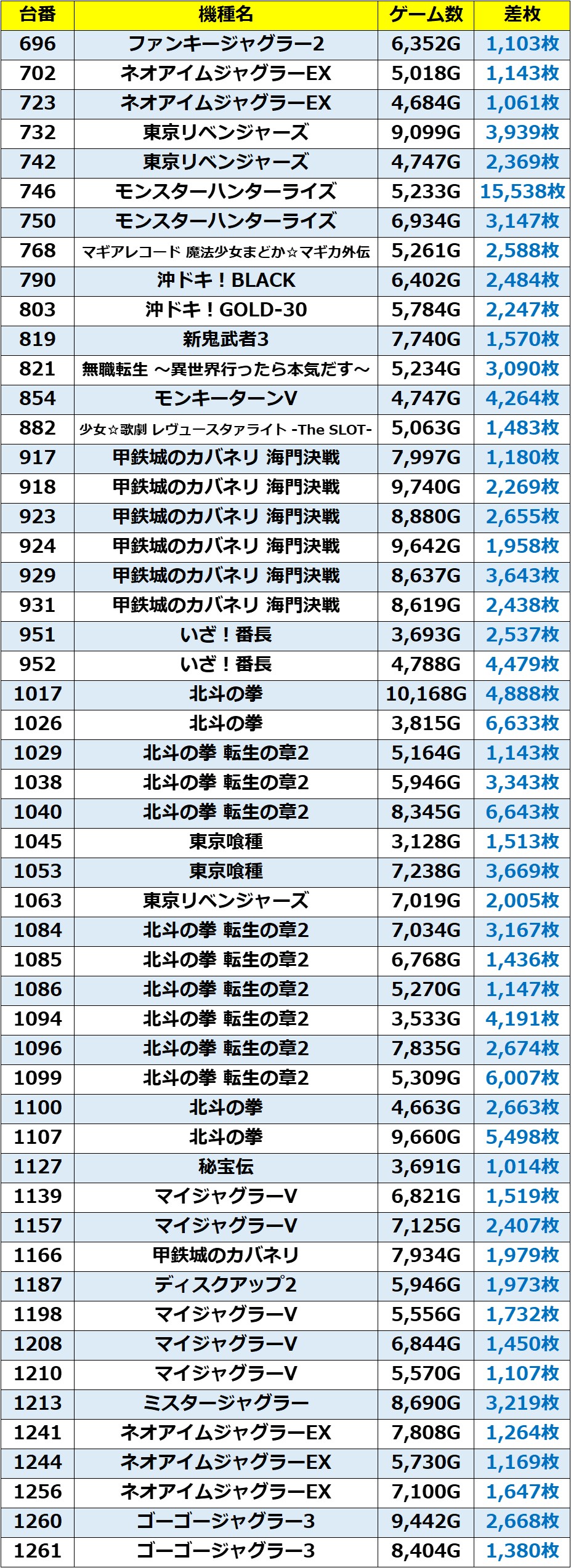 ・1台あたりの平均差枚数:+2,261枚