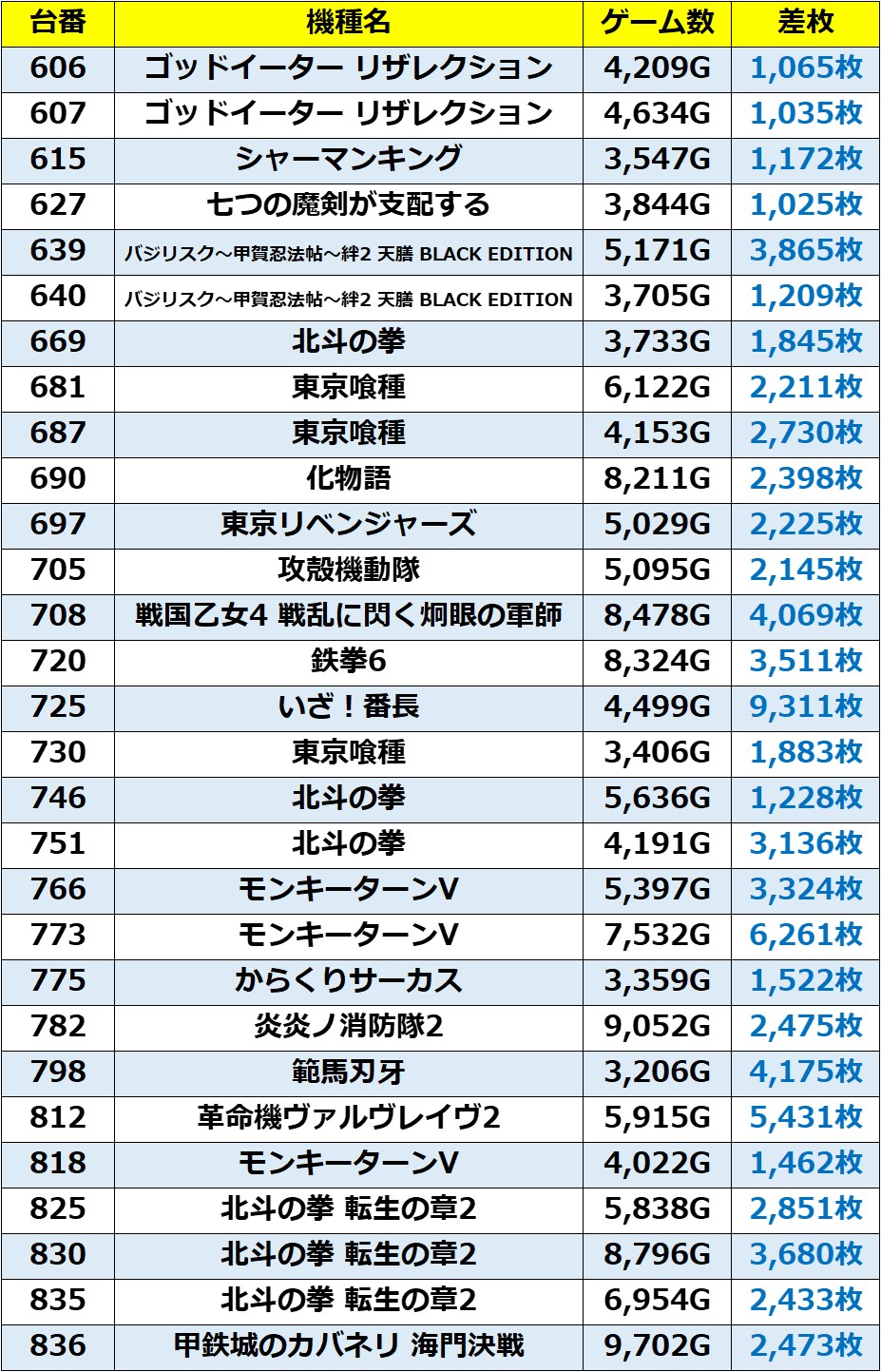 ・1台あたりの平均差枚数:+2,076枚