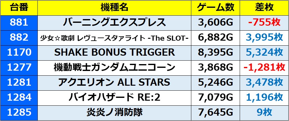 ・集計機種147台(24.5%)総差枚数:+382,744枚