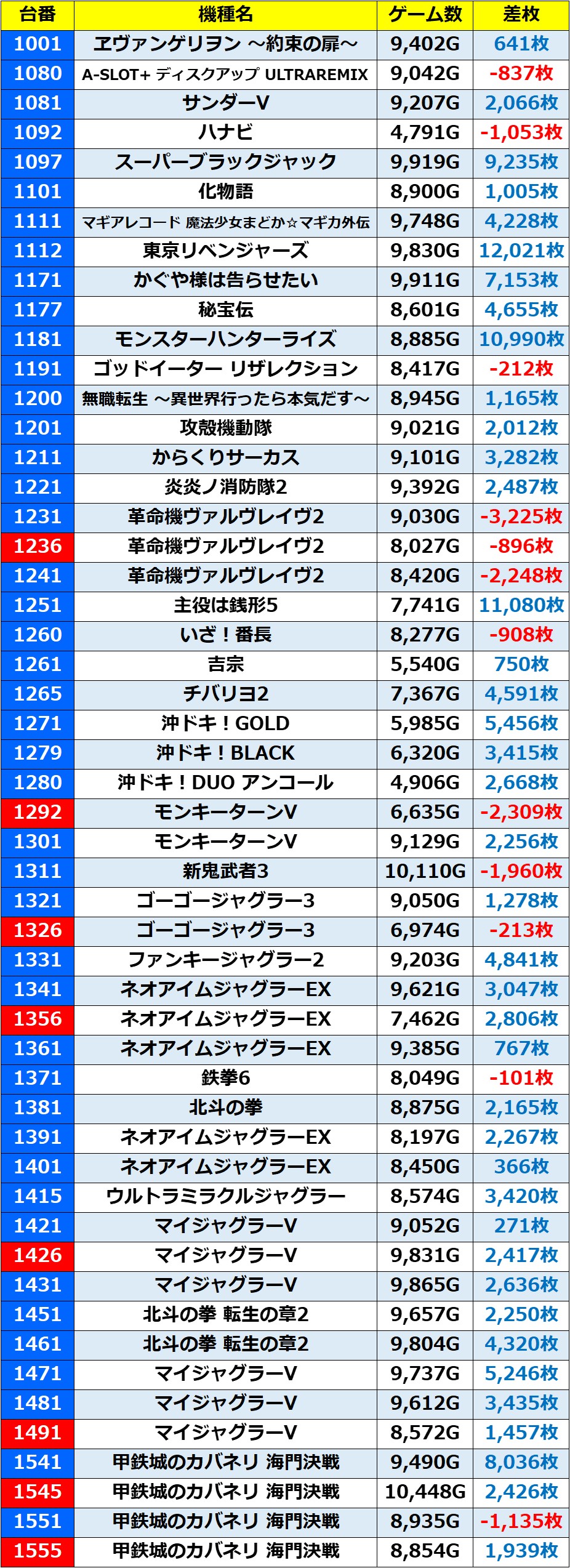 ・集計機種84台(19.8%)総差枚数:+193,033枚