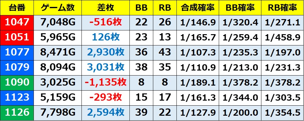 ・集計機種45台(43.7%)総差枚数:+77,833枚