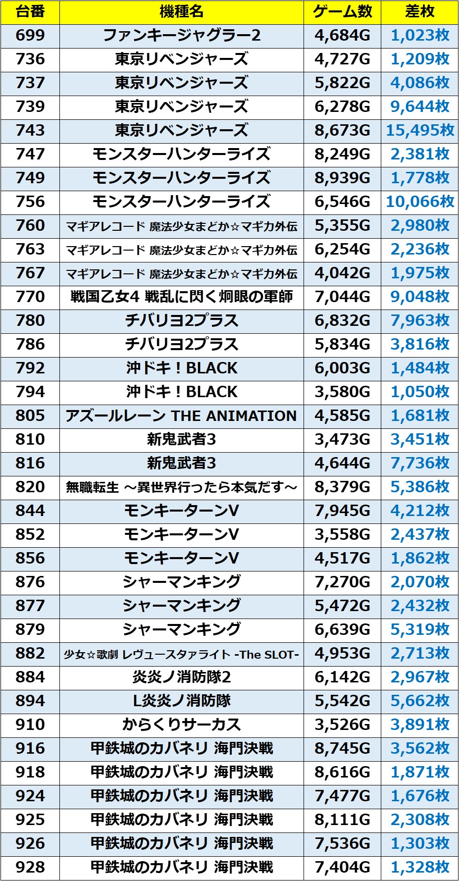 ・注目箇所60台総差枚数:+134,673枚