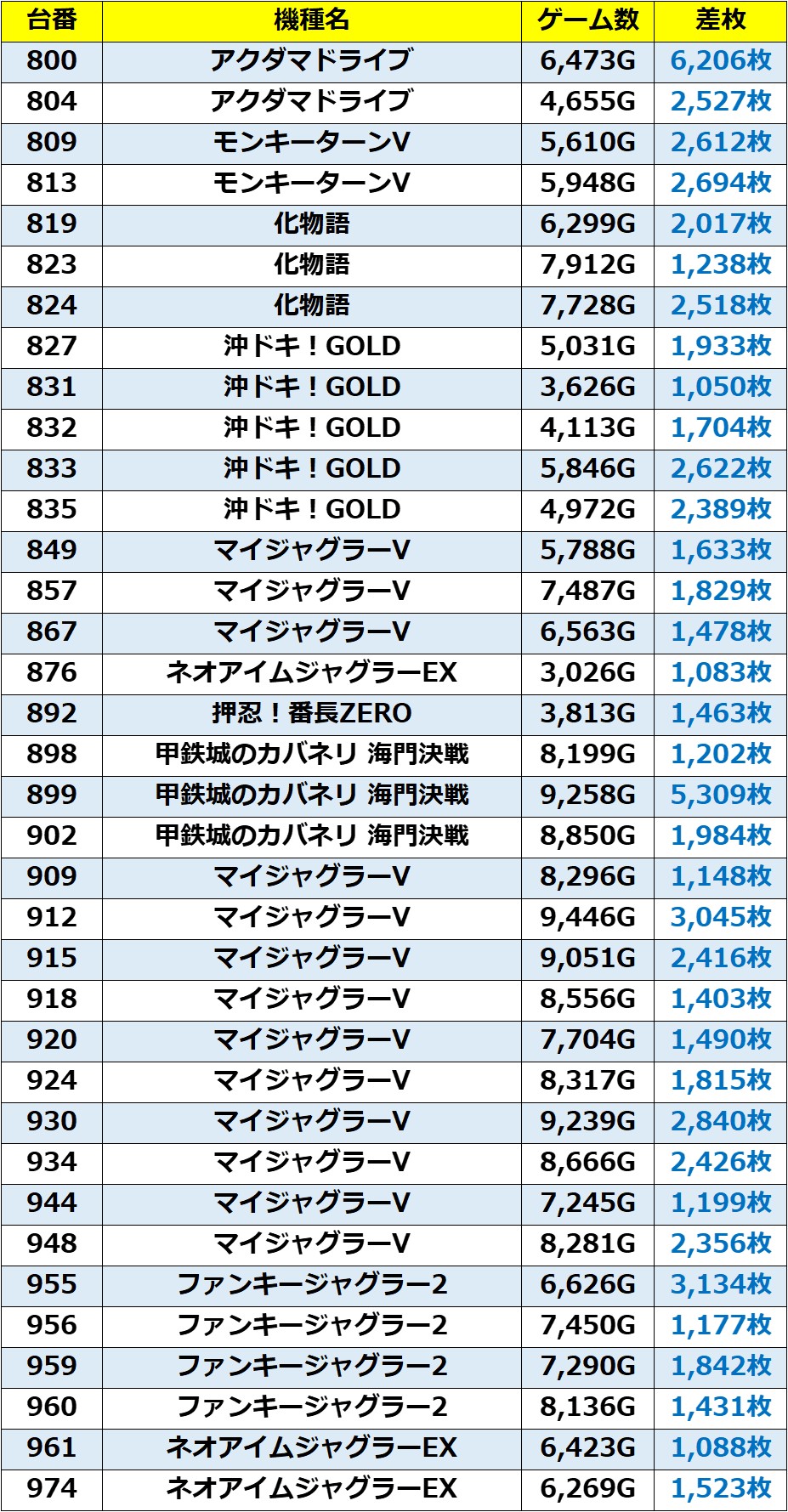 ・1台あたりの平均差枚数:+2,972枚