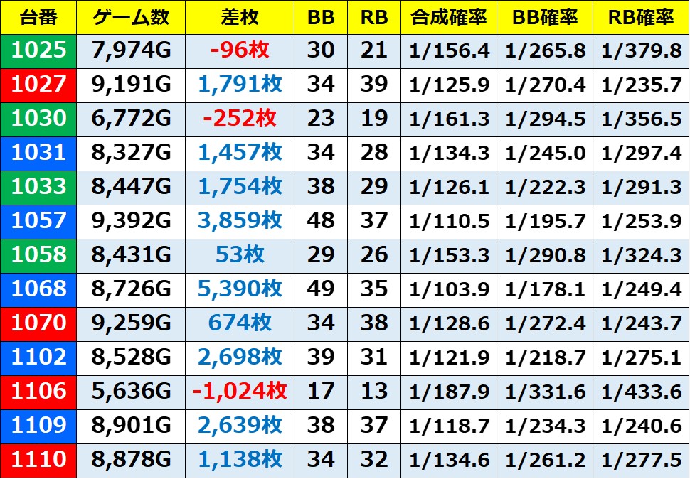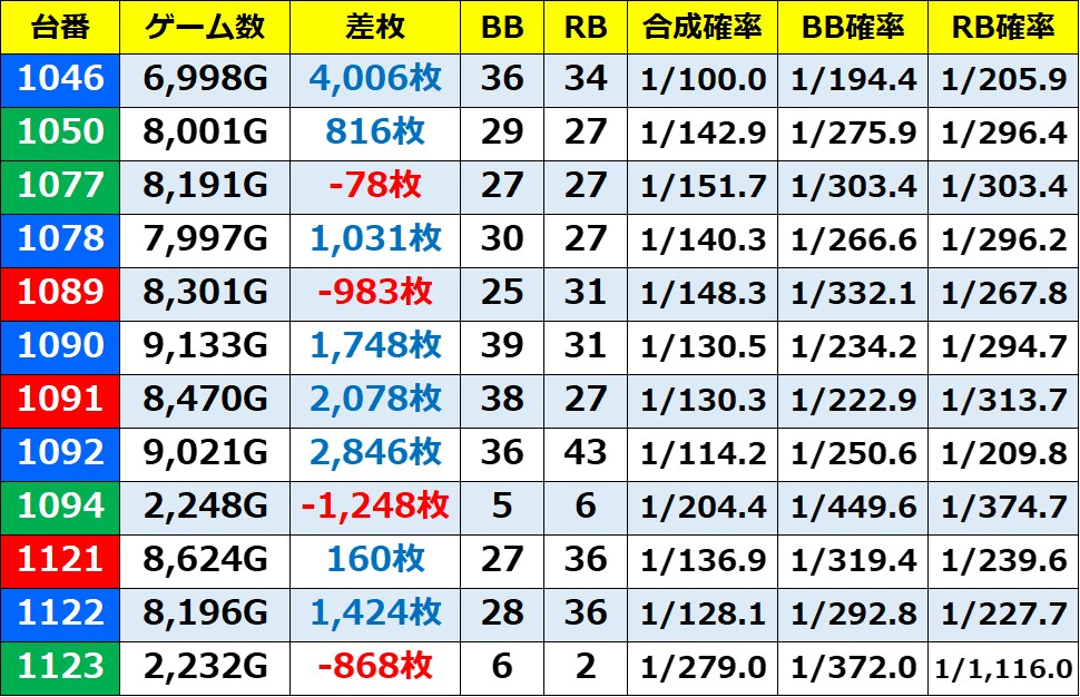 ・集計機種44台(42.7%)総差枚数:+68,633枚