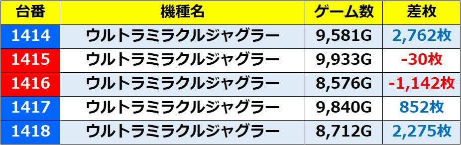 ・集計機種87台(20.5%)総差枚数:+147,322枚