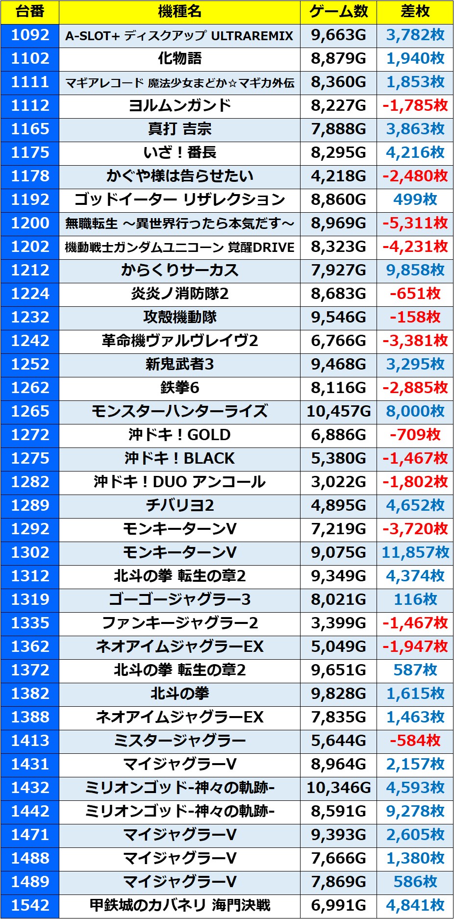 ・1台あたりの平均差枚数:+1,693枚